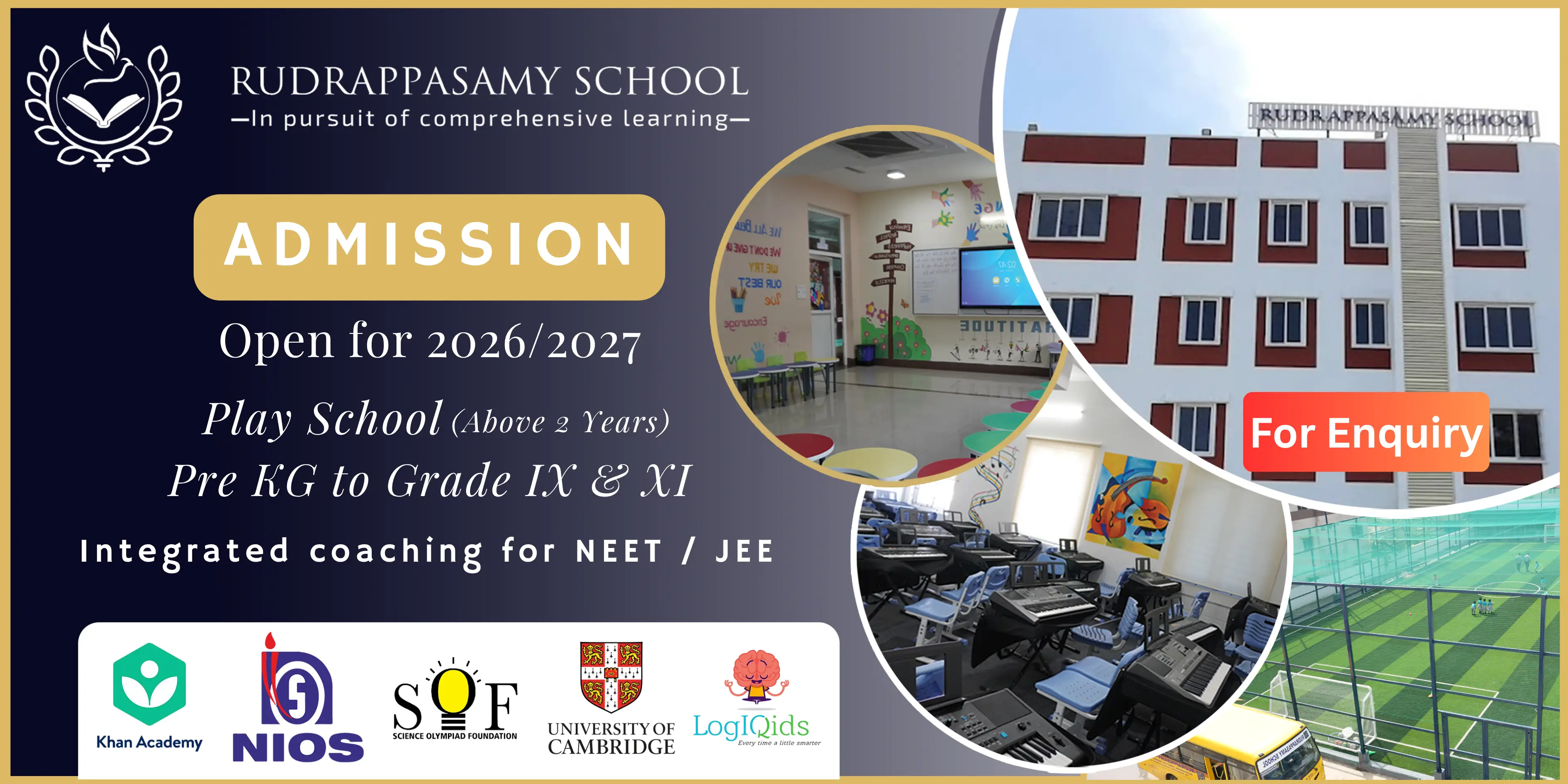 Rudrappasamy School was established on the basis of comprehensive learning. We pride ourselves on empowering each student to become the best versions of themselves. Our training prepares them to face competitive exams and challenging careers without compromising our Indian values and patriotic principles.